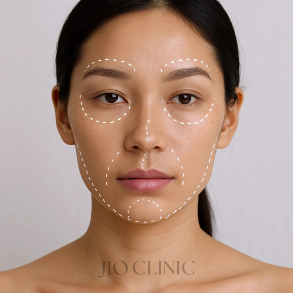 Injectable gels (usually hyaluronic acid-based) that restore volume and contour specific areas like lips, cheeks, and jaw. Delivers instant results that restore youthful proportions and enhance facial features naturally.
